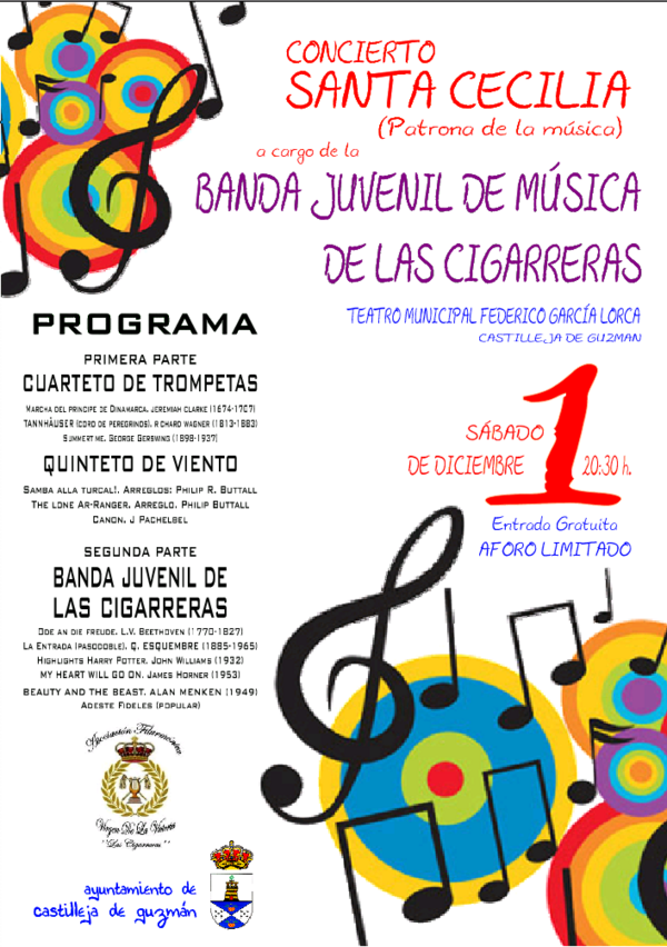 lugar un Concierto de Santa Cecilia a cargo de la Banda Juvenil de Música de las Cigarreras.
